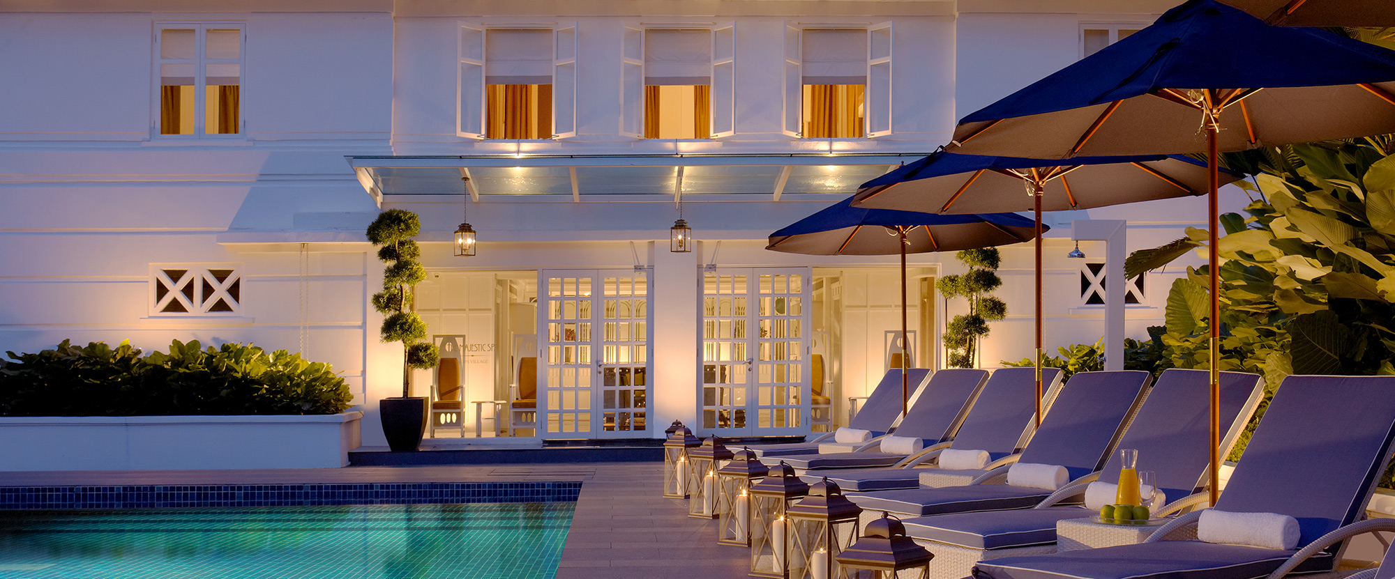 British-themed spa with Macintosh-style decor at a colonial hotel offering facials, massages & more.